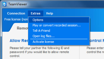 برای رفتن به بخش تنظیمات نمر افزار تیم ویور باید از بالا نرم افزار گزینه Extras را انتخاب کرده و Options را کلیک کنید.