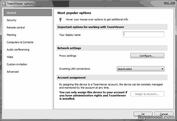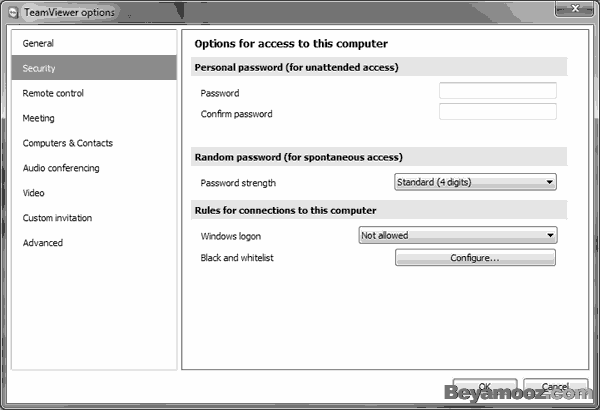 تنظیمات بخش Security در نرم افزار Team Viewer
