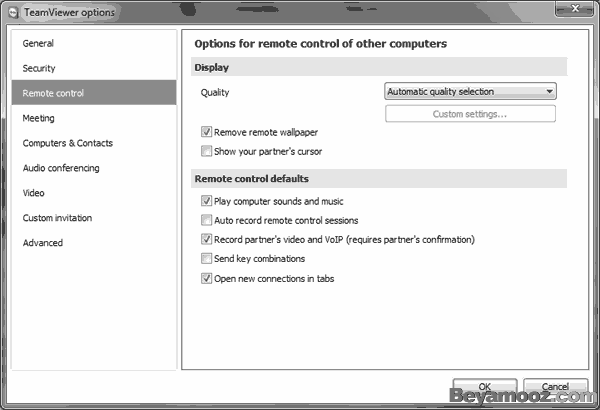 تنظیمات بخش Remote Control در نرم افزار Team Viewer