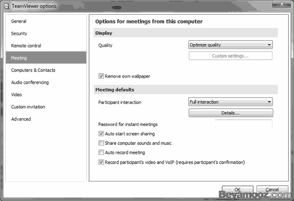 تنظیمات بخش Meeting در نرم افزار Team Viewer
