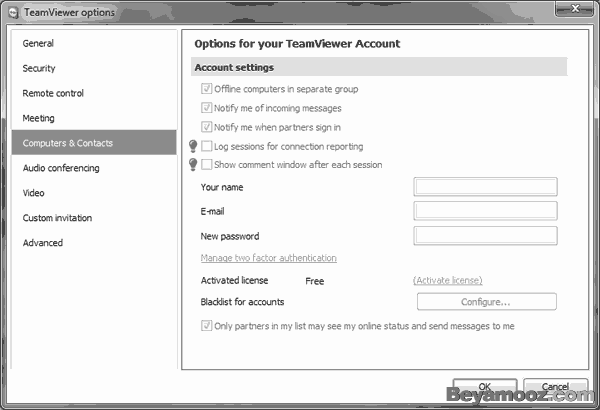 تنظیمات بخش Computers & Contacts در نرم افزار Team Viewer