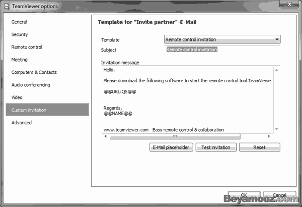 تنظیمات بخش Custom Invitation در نرم افزار Team Viewer