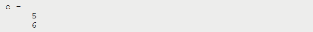 توجه کنید که پنجره ی Workspace مقدار e را به عنوان یک لیست 2x1 و به صورت عمودی، نشان می دهد: