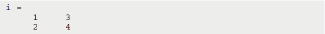برای اینکه ترانهاده ی ماتریس بالا را مشاهده کنید، عبارت '[i=[1,2;3,4 را تایپ کنید و کلید Enter را فشار دهید. نتیجه ی زیر حاصل خواهد شد: