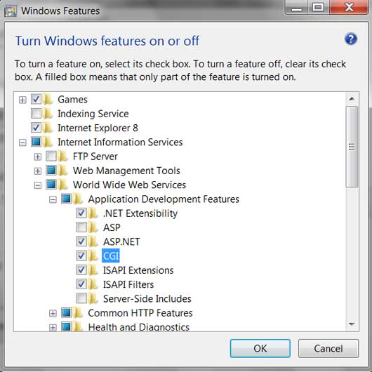 1. قبل از همه مطمئن شوید كه CGI روی IISتون نصب هست، این رو میتونید از اینجا چك كنید: