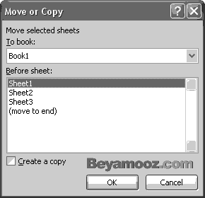 همچنین با انتخاب گزینه Move or Copy برروی هر یک از Sheet ها پنجره ایی بصورت شکل (3) ظاهر خواهد شد.